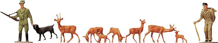 Sada obsahuje figurku myslivce a jeho psa, dřevorubce a srnky.
