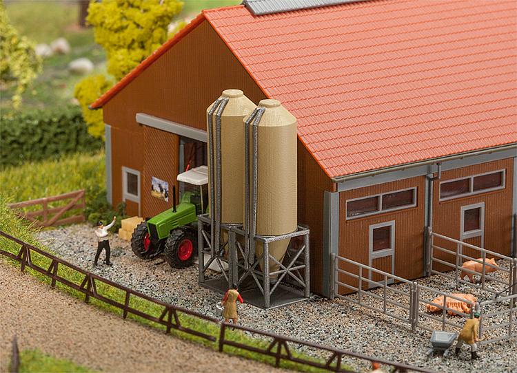 Stavebnice modelu dvojitého sila pro skladování krmiv. Svnějšími trubkami a ocelovým rámem. Rozměr: 27 x 15 x 50 mm (2 x)