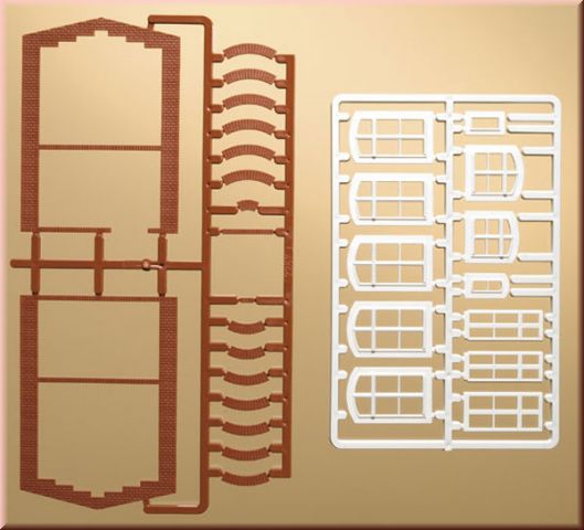 Nadokenní oblouky a okna obsahuje 5 malých oken, 10 středních oken, 25 velkých oken a nadokenní oblouky a štíty