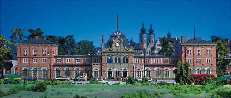 Stavebnice impozantního modelu nádraží podle skutečnosti. S vybaveným interiérem, otevíratelnými dveřmi atd. Detailní a bohatá výzdoba.