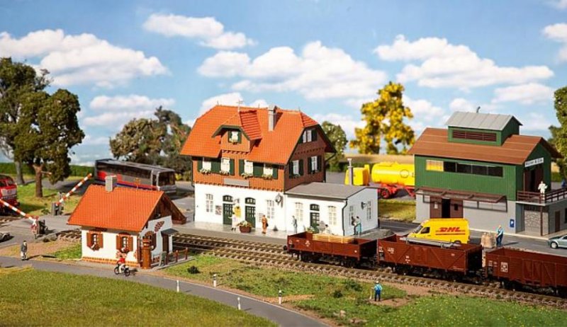 Sada obsahuje venkovské nádraží, skladiště s nakládací rampou a malý drážní domek se závorami.