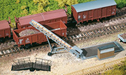 Trojdílná sada obohatí vaše zařízení anebo vaše diorama (sypný material,eletrický výboj)Výškově představitelný 21 až 52mm,Dopravní pás,obslužná machanika,nádražní krajina..)Plošinový vůz 85x22mm(sypná hmota)-66x36x21mm Pojízdná nákladová rampa výškově představitelná 20mm.-53x12mm