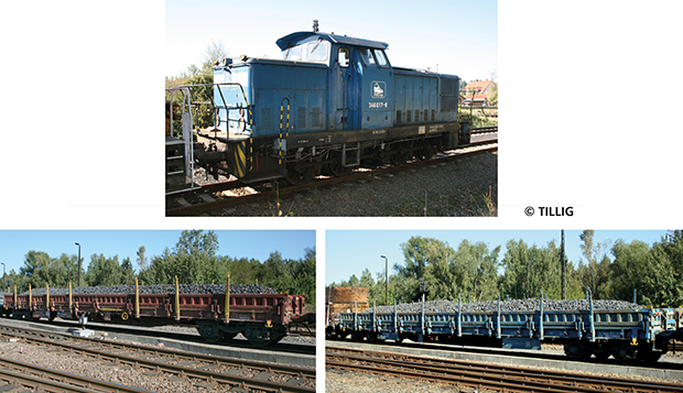 Nákladní set „Pressnitztalbahn“ sestávající se z dieselové lokomotivy řady 346 a dvou nízkostěnných vozů Res