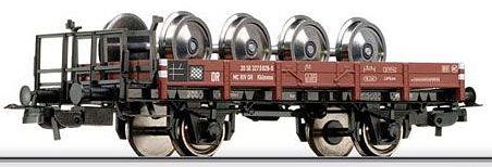 Nízkostěnný vůz Kklm s nákladem dvojkolí