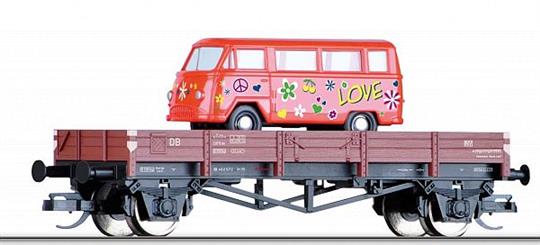 Nízkostěnný vůz Kklmmo 493 ložený minibusem Matador "Flower Power"