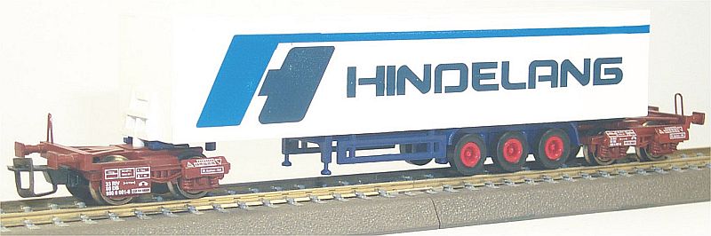 Nízkostěný vůz ,,Rola" s nákladem kamionu drah DB.