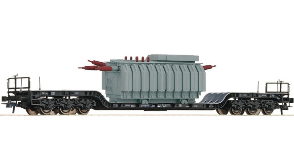 Nízký plošinový vůz s nákladem.