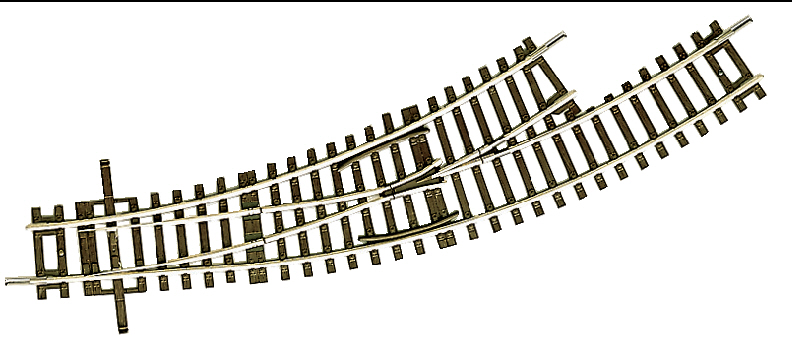 Oblouková výhybka levá BWl 2/3, poloměr hlavní koleje a odpojovací koleje 358 mm (R2)/30o.
