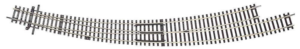 Oblouková výhybka levá BWl 9/10, poloměr hlavní koleje a odpojovací koleje 826,4 mm (R9)/30o.