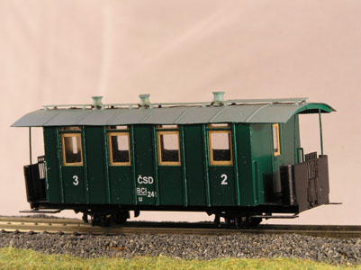 Kompletní model osobního vůzu BCi/u 241. Barva: tmavě zelená