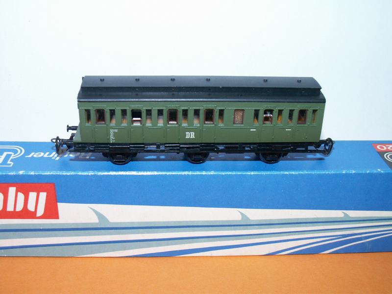 Osobní 3 osý vůz bez brzdařské budky zelené barvy drah německých s ostrými popisy. nemá krabičku. Stav: nové