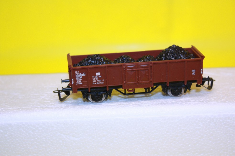 Otevřený nákladní vagón DR s uhlím kovová kola TT