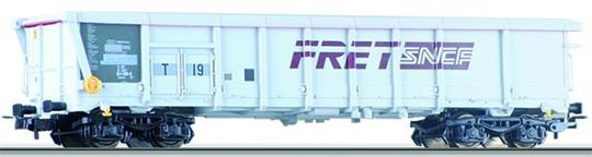 Otevřený nákladní vagon Tamns T 19 s rolovací plachtou.