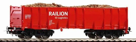 Otevřený nákladní vůz Eas Railion s nákladem pilin drah DB.
