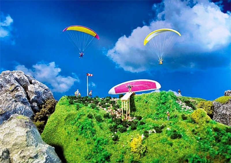 Sada obsahuje 3 kluzáky, 4 figurky, odrazový můstek a ukazatele větru.