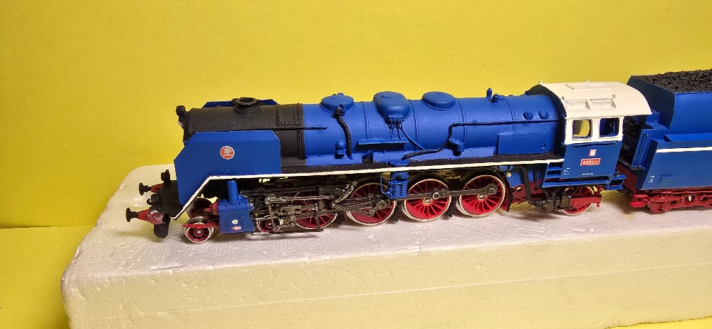 Lokomotiva je z odlitku posazena na tovární pojhezd firmy Piko, pohon v tendru lokomotiva je osvětlena. Nová nepoužívaná