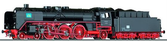 Parní lokomotiva BR 01 s naloženým vozíkem.