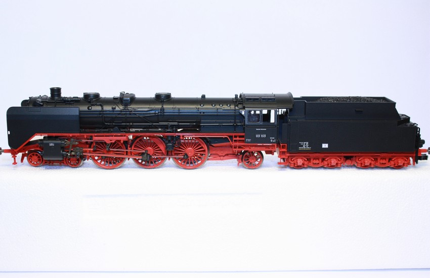 Parní lokomotiva BR 03.0-2 drah DR. Model je osvětlen dle směru jízdy a to bíle. Model je dále připraven na digitál, stačí jen vsunout dekodér. Délka: 275 mm