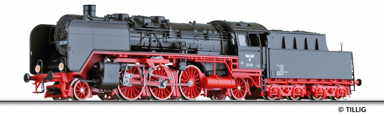Parní lokomotiva BR 23.0 DRG. Technické parametry: Příprava na DCC: Ano Osvětlení: 2 bodé přepíná dle jízdy Spojení: šachta dle NEM 358 Délka: 191.00 mm
