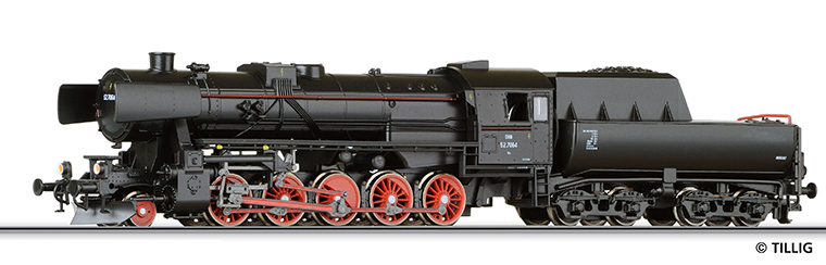 Parní lokomotiva Rh52. Osvětlení dle jízdy, šachta dle NEM:ano. Délka 193mm.