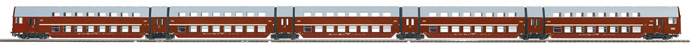 Městská patrová souprava drah DR v tamvě červené barvě, celková délka činí: 1147 mm.
