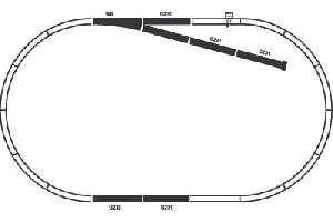 Obsah: 1 x výhybka pravá WR 1 x rovná kolej G239 5 x rovná kolej G231 1 x zarážedlo základní plocha A + B: 158 x 88 cm Min.plocha na postavení: 168 x 98 cm