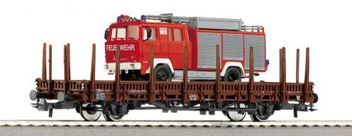 Plošinový nákladní vůz s hasičským autem drah DB. Délka 162 mm.