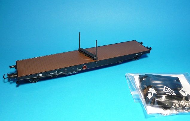 Plošinový nákladní vůz s oplenem a klanicemi Oa ČSD.