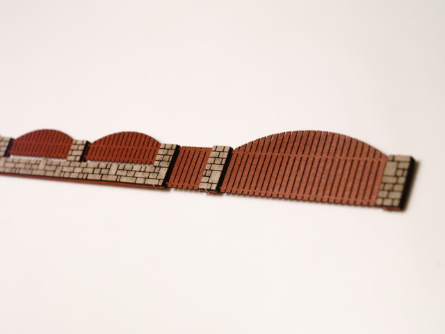 Plot, oblouky s branou konce desek rovné, d - 660 mm, v - 11 mm,kámen, barva mahagon