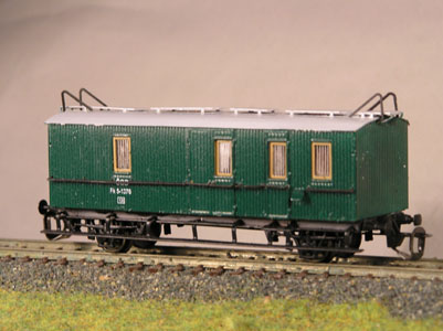 Stavebnice modelu poštovního vozu Fk5-1376 je třeba ji poskládat. Barva: