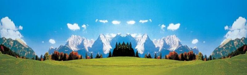 2-dílný model pozadí krajiny v oblasti Karwendelgebirge. Rozměr: 3200 x 1000 mm