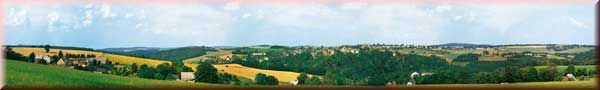 Pozadí je z 5 barevných fotografií. 66 cm dlouhá,1 panorama a město ve kterém je zámek vdálce jsou Krušné Hory.Celková délka: 330x47cm.