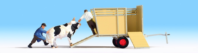 Přepravník, kráva, 2 postavičky.
