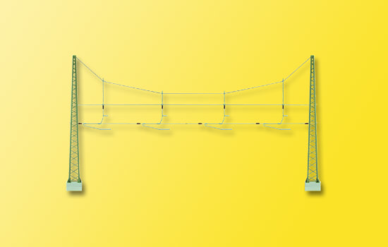 Pokrytí čtzř kolejí. Elektricky neizolované. 190 mm mezi středy uchycení troleje. Výška 124 mm.