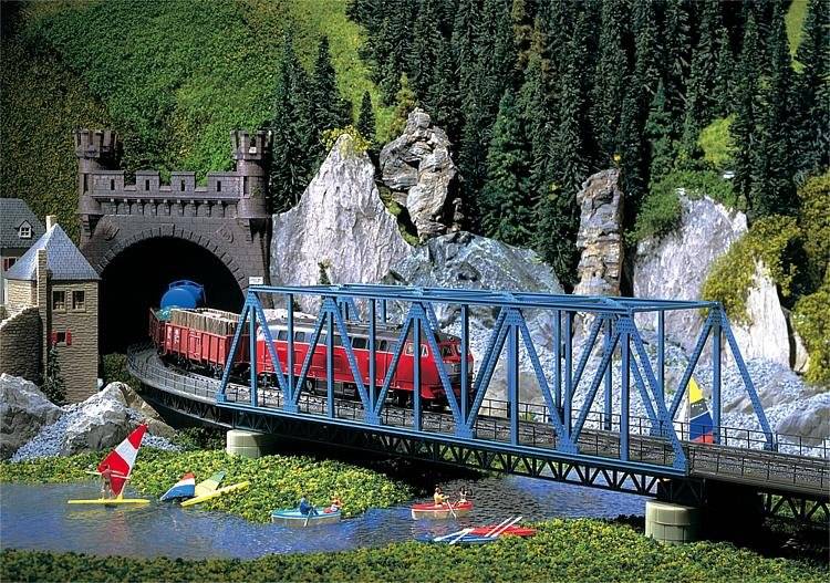 Stavebnice příhradového mostu. Rozměr: 376 x 77 x 138 mm
