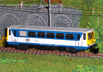 Poípojný vuz K 810 čD bílo/modrý s žlutými čely.Model je opatřen kovovým dvojkolím, jsou tak vylepšeny jízdní vlastnosti o proti dřívější výrobě.