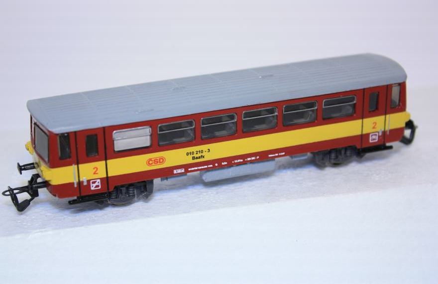 Přípojný vuz k M152 ČSD červený s žl.pruhem o kolo vozu.Model je opatřen kovovým dvojkolím, jsou tak vylepšeny jízdní vlastnosti o proti dřívější výrobě.