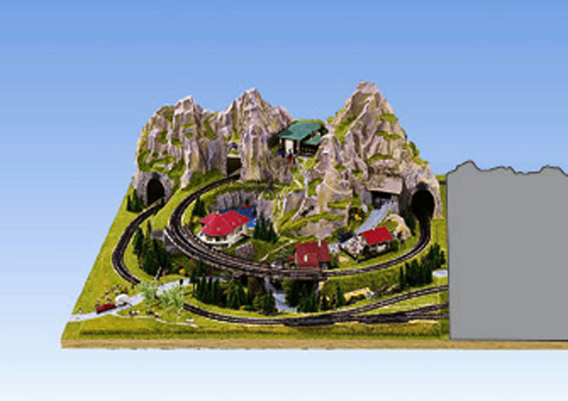 Levá přístavba základu kolejiště. Přístavba se skálami a tunely. Možno doplnit lanovkou. Plastový výlisek na dřevěném rámu. Lanovka, stromy, stavby ani koleje nejsou součástí dodávky. Rozměry:100cm(d)x120cm(š)výška 40cm Pro vel.pro TT vhodné doplnit tunelovými portály NO48790(3x)