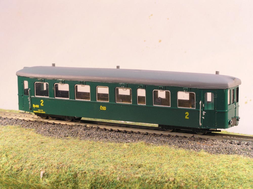 Přívěsný vůz Ba/u 622 HOe kompletní tm. zelený se žlutým popisem