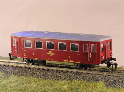 Kompletní model přívěsného vozu BDlm54. Barva: červená-žlutý popis