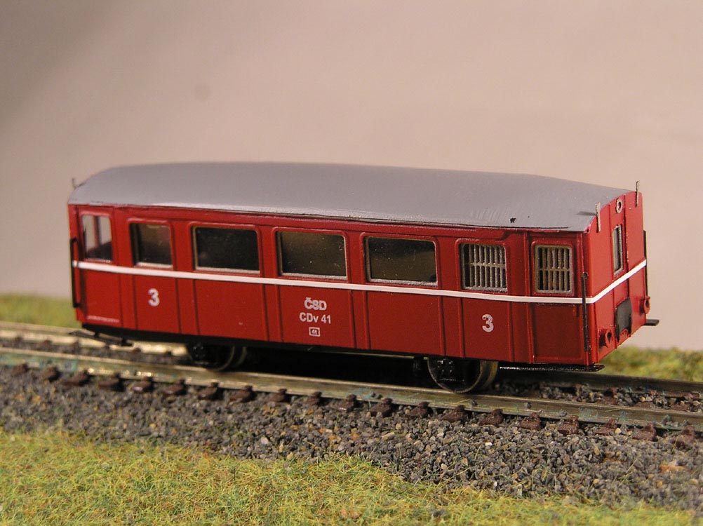 Kompletní model přívěsného vozu CDv28. Barva: červená