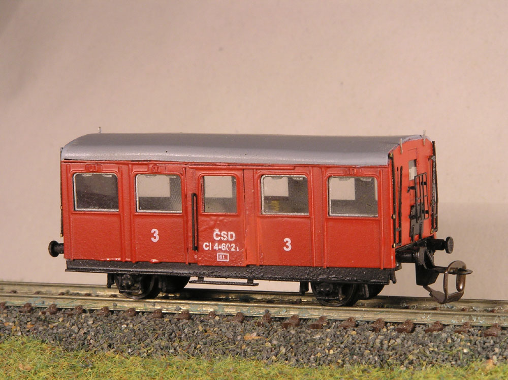 Kompletní model přívěsného vozu Cl32. Barva: červená