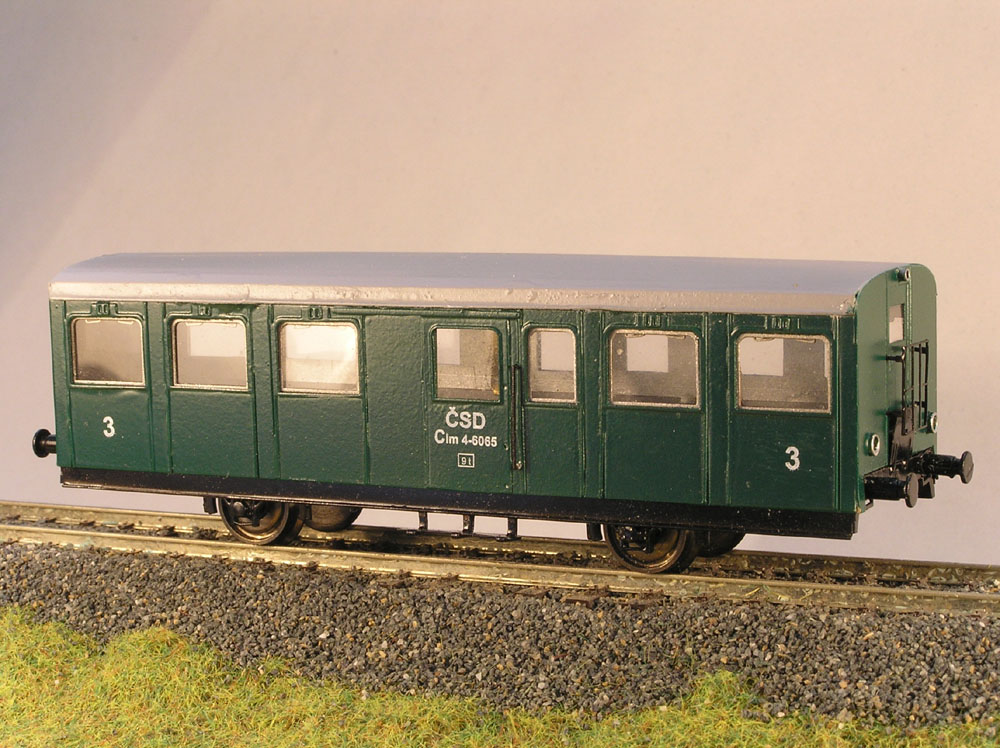 Kompletní model přívěsného vozu BDlm54. Barva: tmavě zelená