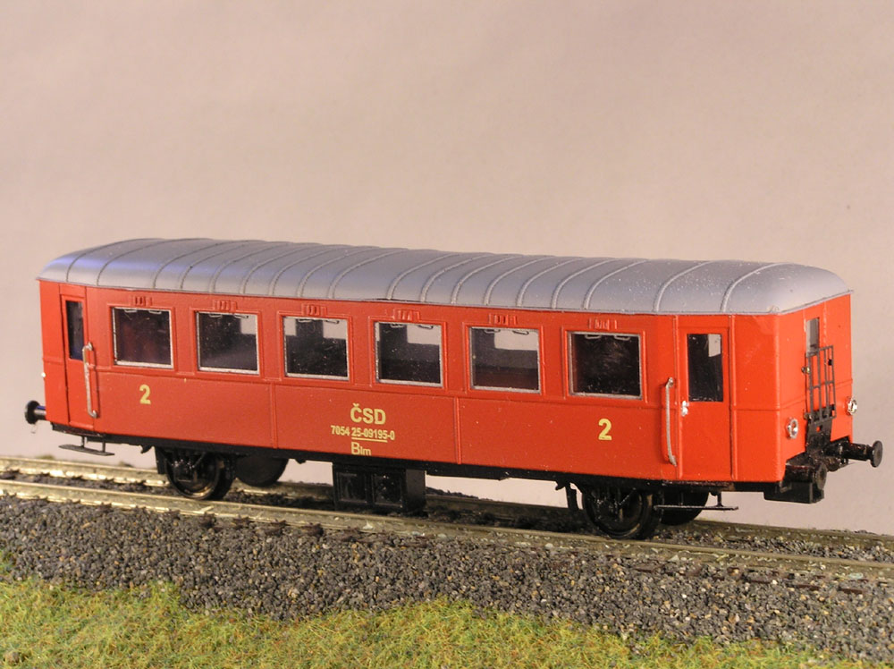 Kompletní model přívěsného vozu Clm46. Barva: červená-žlutý popis