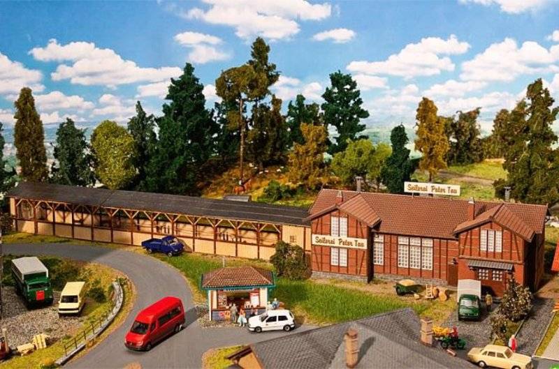 Stavebnice patinované budovy provaznictví. Historická cihlová budova se dřevem - laserem řezané dřevěné díly. Rozměr: 713 x 130 x 106 mm
