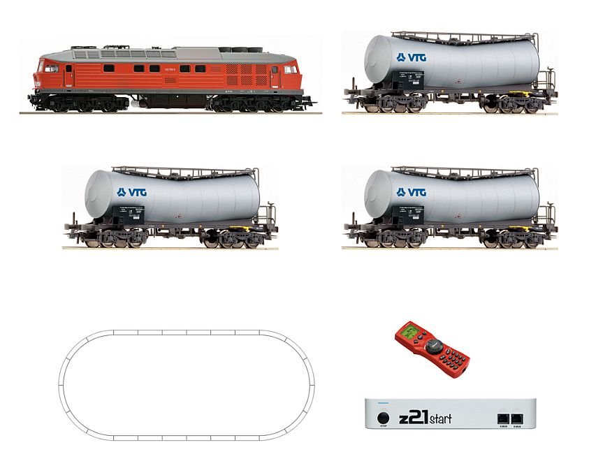 Roco - Digitální startset obsahující dieselovou lokomotivu BR 232 + 3 cisternové vozy "VTG" , kolejový ovál, Z21 start,multiMaus (HO)
