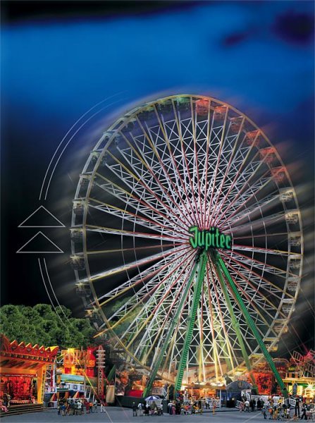 Stavebnice modelu ruského kola s motorem (16 V AC), 36ti koši. Pro osvětlení všech košů a nápisu se doporučuje dovybavit osvětlením 140471. Rozměr: 280 x 220 x 520 mm