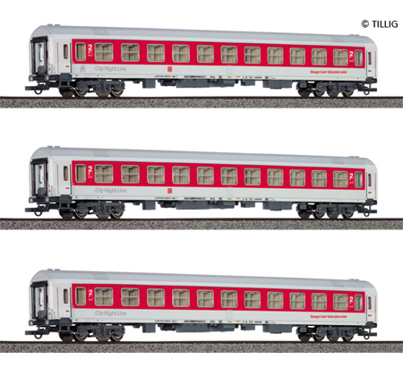 Rychlíková souprava City Nightline DBAG, s různými čísly. Délka přes nárazník 917.00 mm