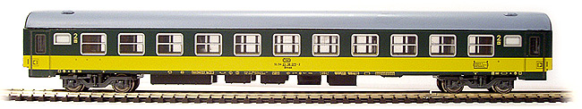 Rychlíkový vůz zelenožluté barvy a to drah ČSD délka:220 mm