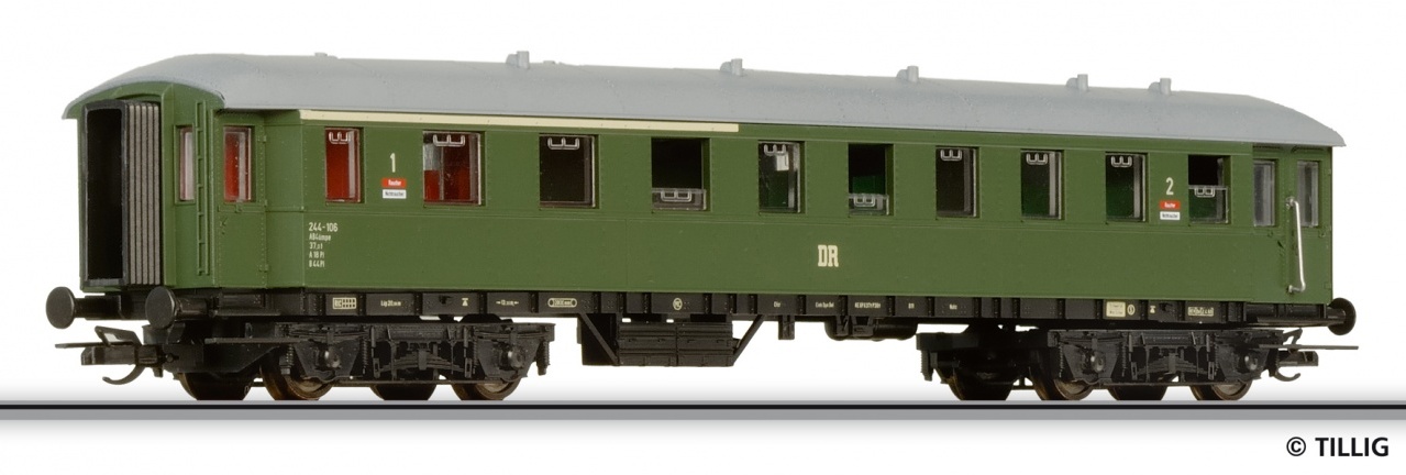 Rychlíkový vůz 4 nápravový 1/2.třídy drah DR, délka:175mm,kulisa na krátké spřáhlo, interiér tohoto vozu je vybaven a zároveň i osvětlen.